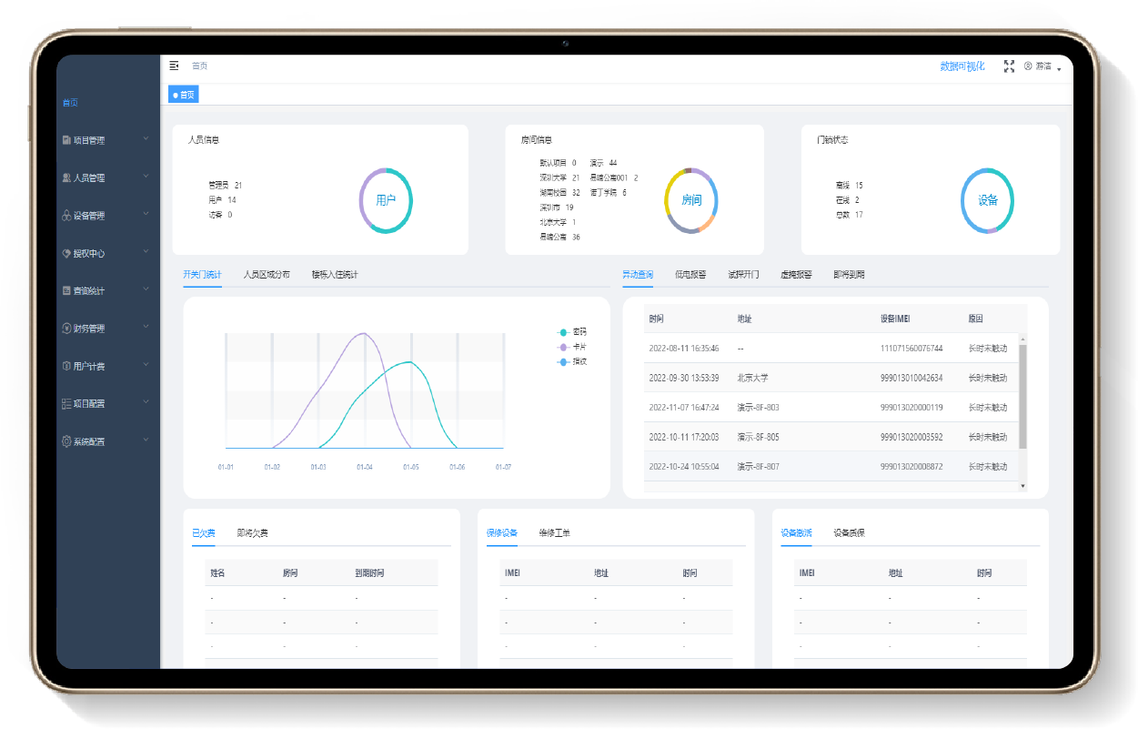 ![]() 设备管理/Administration此页主要显示设备管理的各项信息,方便客户进行门锁等各项设备的查看,实时查看门锁的开关情况,方便维修管理![]() ![]() |