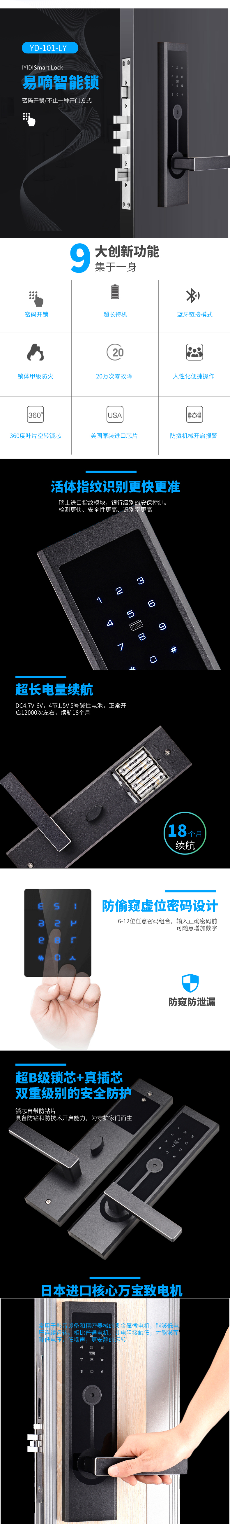 低于4.5V报警,此时仍可开锁约50次开锁方式: